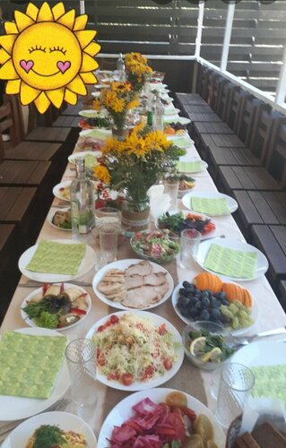 Отдыхали с семьей с 26 по 28 июля. База ухоженная, классная общая кухня, номера чистые, кровати с новыми матрацами и хорошим бельем. В фойе много настольных игр для детей и взрослых, включая даже нарды. Бассейн просто сказка!!! Персонал отзывчивый! По выходным живая музыка, за что отдельное спасибо Елене!!! Особая благодарность директору базы Марине Михайловне за гостеприимность! Обязательно приедем еще!